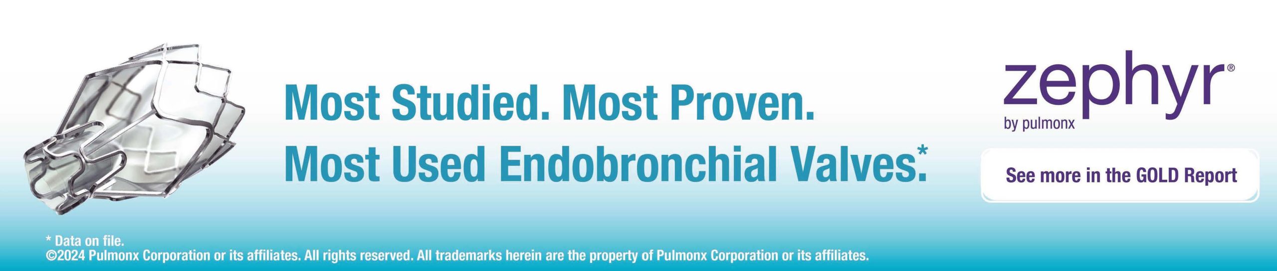 Pulmonx Corporation (Nasdaq: LUNG) is a global leader in minimally invasive treatments for chronic obstructive pulmonary disease (COPD). Pulmonx’s Zephyr Endobronchial Valve, Chartis Pulmonary Assessment System and StratX® Lung Analysis Platform are designed to assess and treat patients with severe emphysema/COPD who despite medical management are still profoundly symptomatic. Pulmonx received FDA pre-market approval to commercialize the Zephyr Valve following its designation as a “breakthrough device.” The Zephyr Valve is commercially available in more than 25 countries, is included in global treatment guidelines and is widely considered a standard of care treatment option for improving breathing, activity, and quality of life in patients with severe emphysema. For more information on the Zephyr Valves and the company, please visit www.Pulmonx.com.